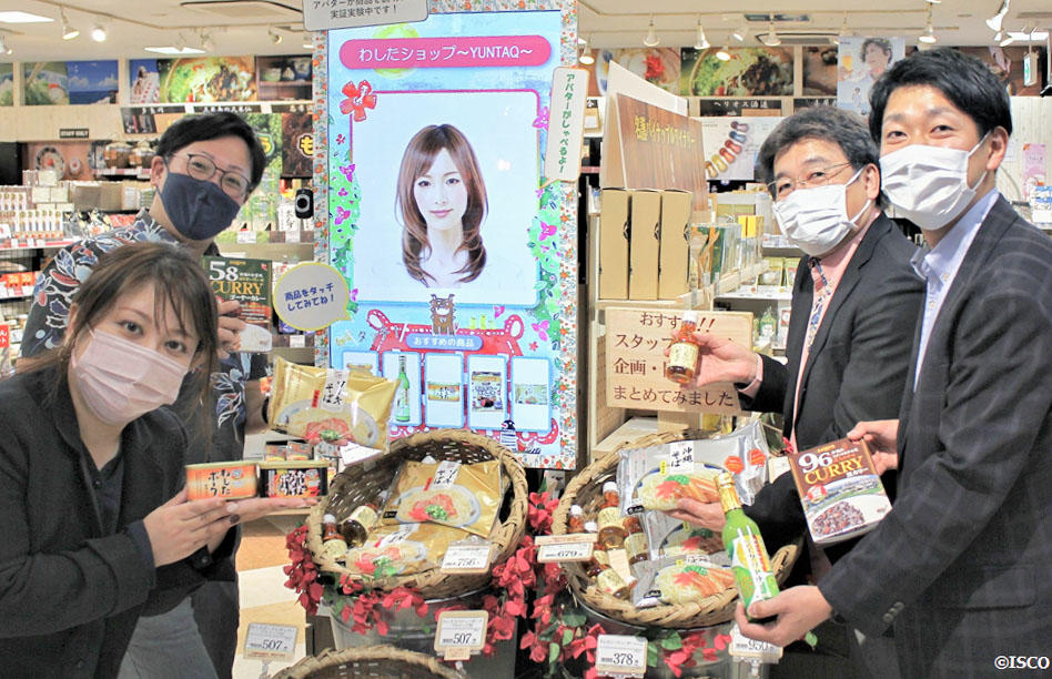 「InterPlay Elastic Frameworkサービス」の遠隔接客システムを、那覇のわしたショップ国際通り店と銀座本店にそれぞれ設置しました。銀座本店にお越しになったお客様は、商品について知りたいことがある場合に、大型ディスプレイを操作して那覇にいる物産の専門家と話をすることができます。銀座と那覇の間にある1,600kmの距離を超えて、専門家によるレベルの高い接客ができますので、お客様の満足度も高かったです。
