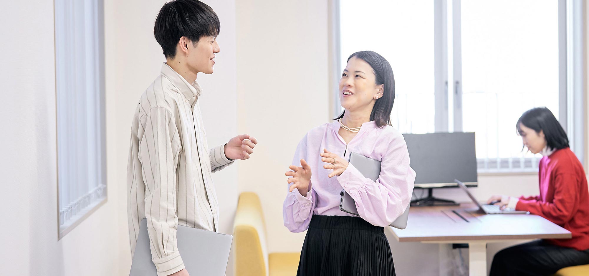 この「人に寄り添う空気」をチームにも広げるために、普段からのコミュニケーションを丁寧に積み重ねることを大切にしています。日常の会話や情報共有があるからこそ、いざという時に気持ちよく支え合える関係が生まれます。普段のやりとりの積み重ねが、働きやすさの土台になると感じています。