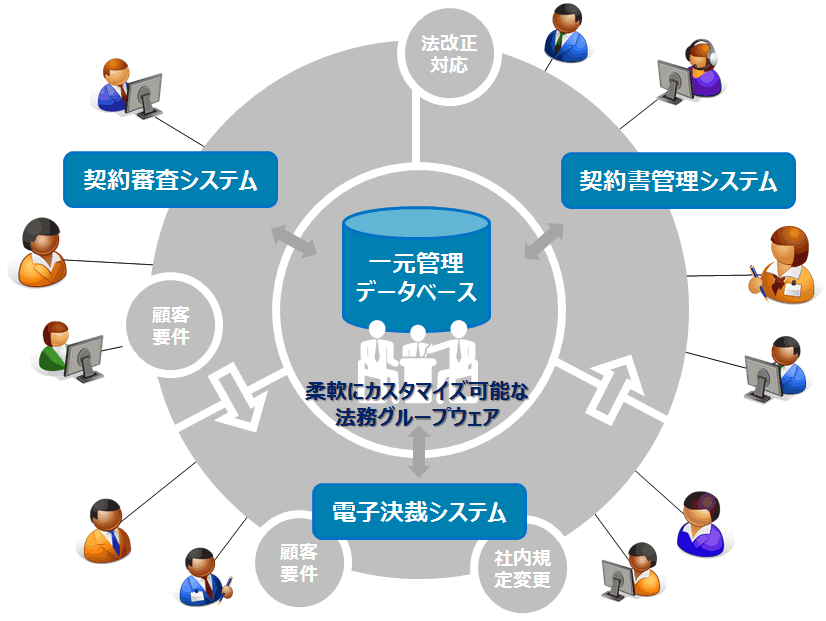 各部門とのやり取り、法務部門のノウハウなどの情報を一元管理し、必要な情報を必要な時に、必要な人に提供可能になります。