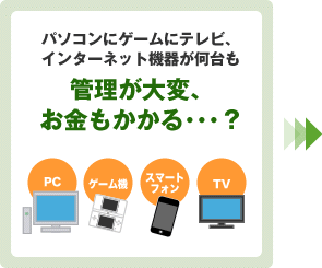 パソコンやゲームが何台あっても料金は一律の、家計に優しいサービスです。