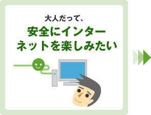 できるだけ不快なものは見たくない、できる限り安全にという方向けの「インターネットあんしんコース」、インターネットには自信がある、多少のトラブルは自分で解決できるという方向けの「インターネットエキスパートコース」をご用意しました。ご自身またはご家族のインターネットスキルにあわせてお選びください。