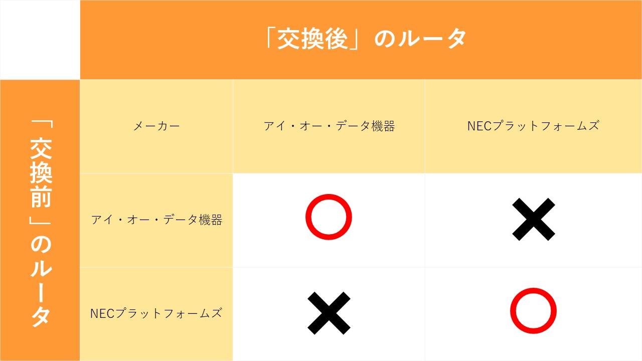 ×できない:NECプラットフォームズ製のファミリースマイル対応ルータおよびその他メーカー製ルータへの交換