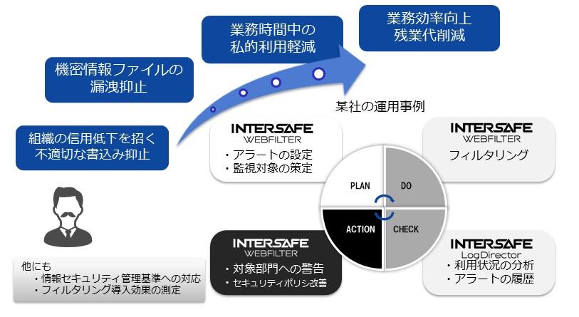 Webアクセス状況を適切に把握・分析し、セキュリティポリシーの改善や 監視を行っていくことで下記のベネフィットが得られます。
