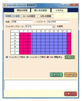 ユーザごとにフィルタリングルールの日時を設定することが可能です。1台のマシンを複数のユーザが利用する場合に最適です。