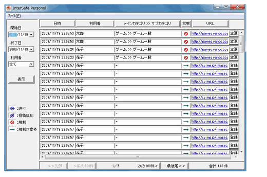 誰がどのようなサイトを閲覧したかをInterSafe Personalを導入しているマシン上で確認することができます。