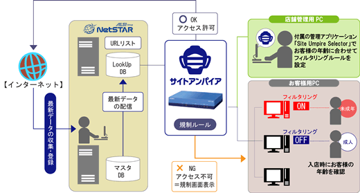 ルータ上で動作するサイトアンパイアだから、パソコンへの影響はありません。 お客様はストレスなしで、安全にサービスをお楽しみいただけます。 もちろん、社会貢献活動に積極的な複合カフェのオピニオンリーダーとして、御社のブランドイメージも向上します。