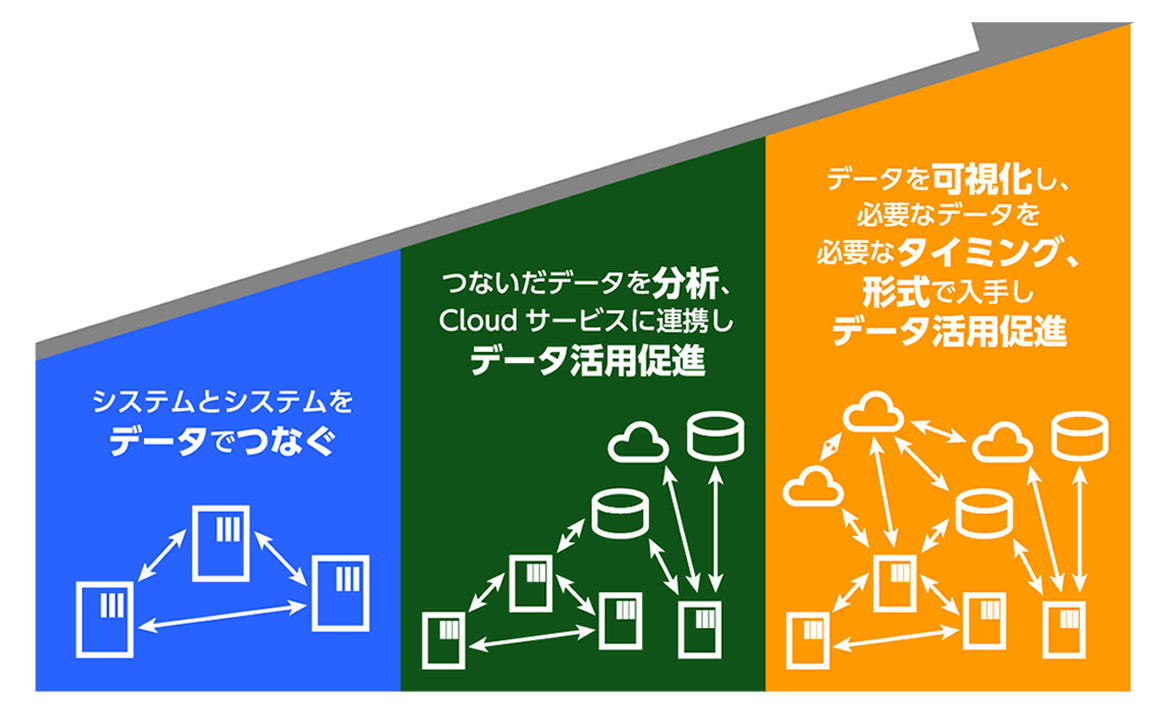 製品群を組み合わせて利用することで企業内のデータ連携/統合し、データ利活用を促進します。