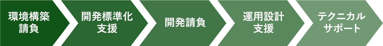 開発標準化を実施し、開発者による開発手法の粒度を統一させ、開発工数/テスト工数を削減できます。将来の改修等のメンテナンスを見据えた対応を実施することで品質の高い開発を実現いたします。